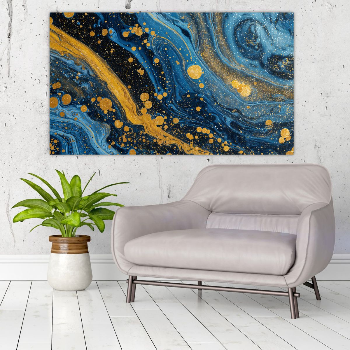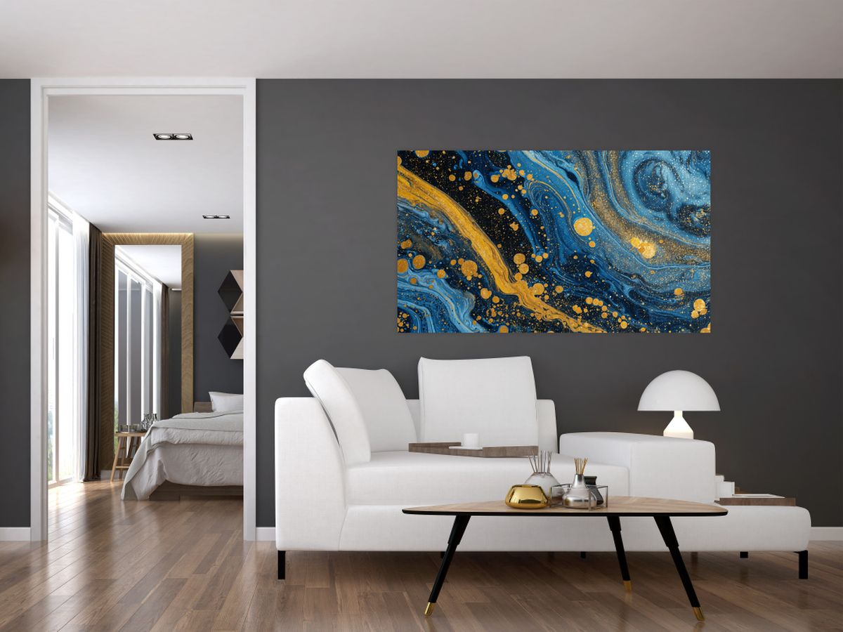 Obraz - Modrá abstrakce se zlatem