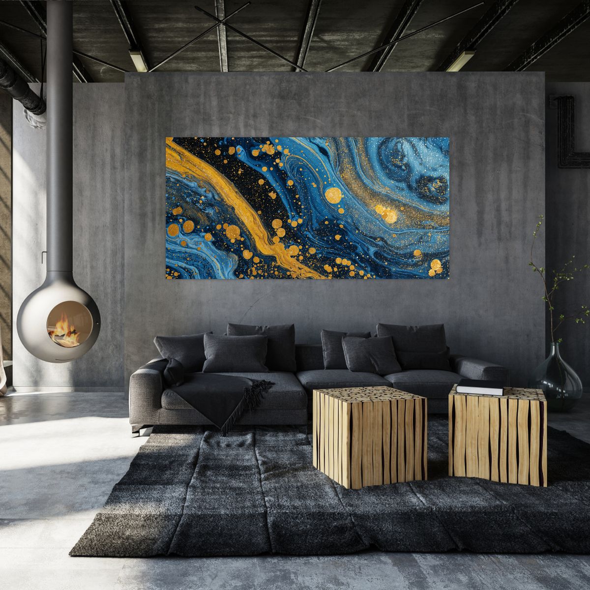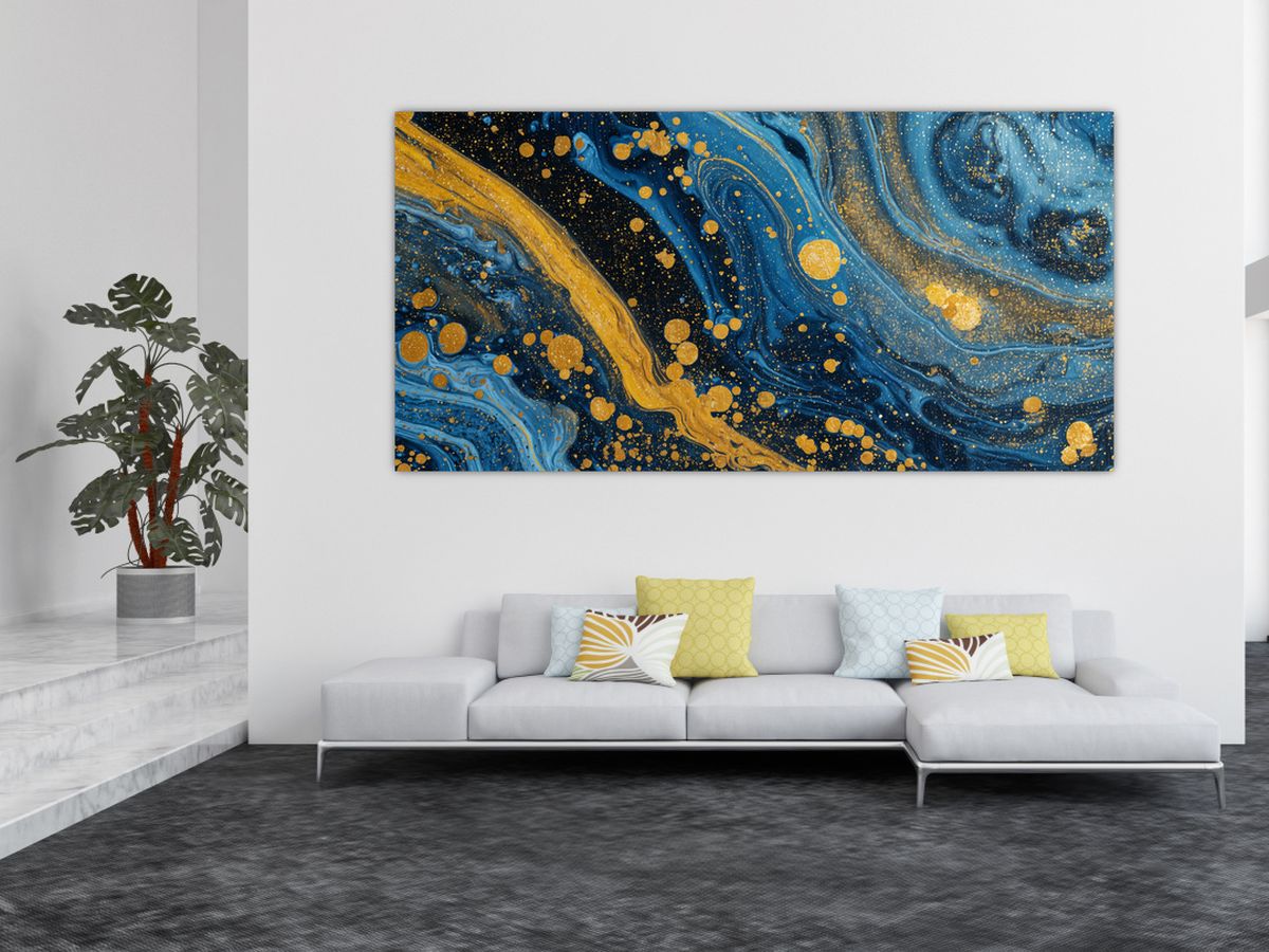 Obraz - Modrá abstrakce se zlatem