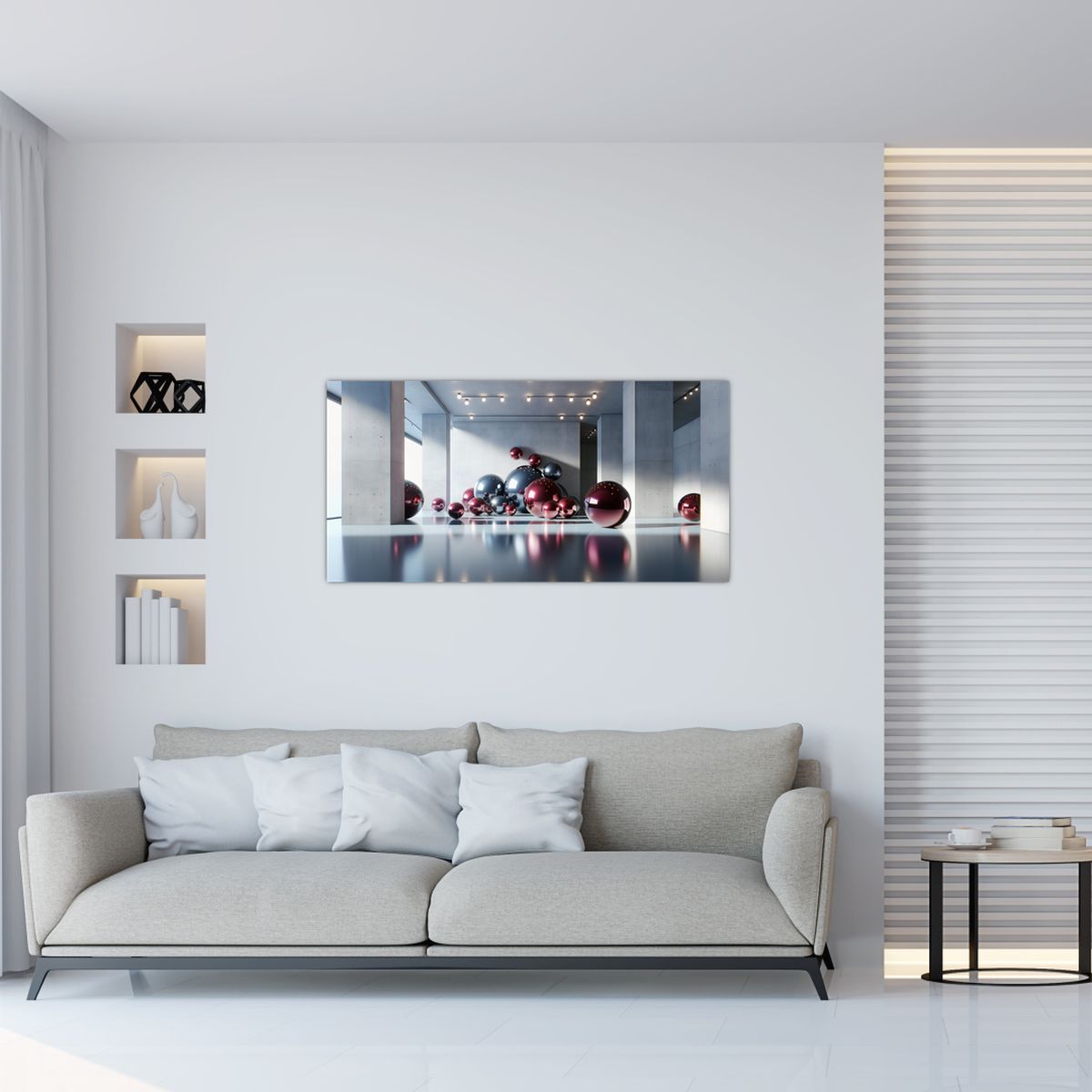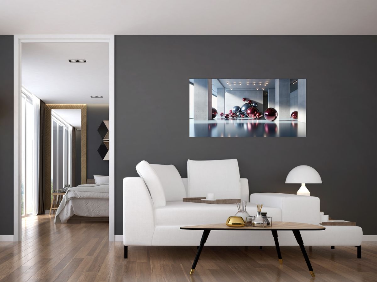 Skleněný obraz - 3D prostor s koulemi II.
