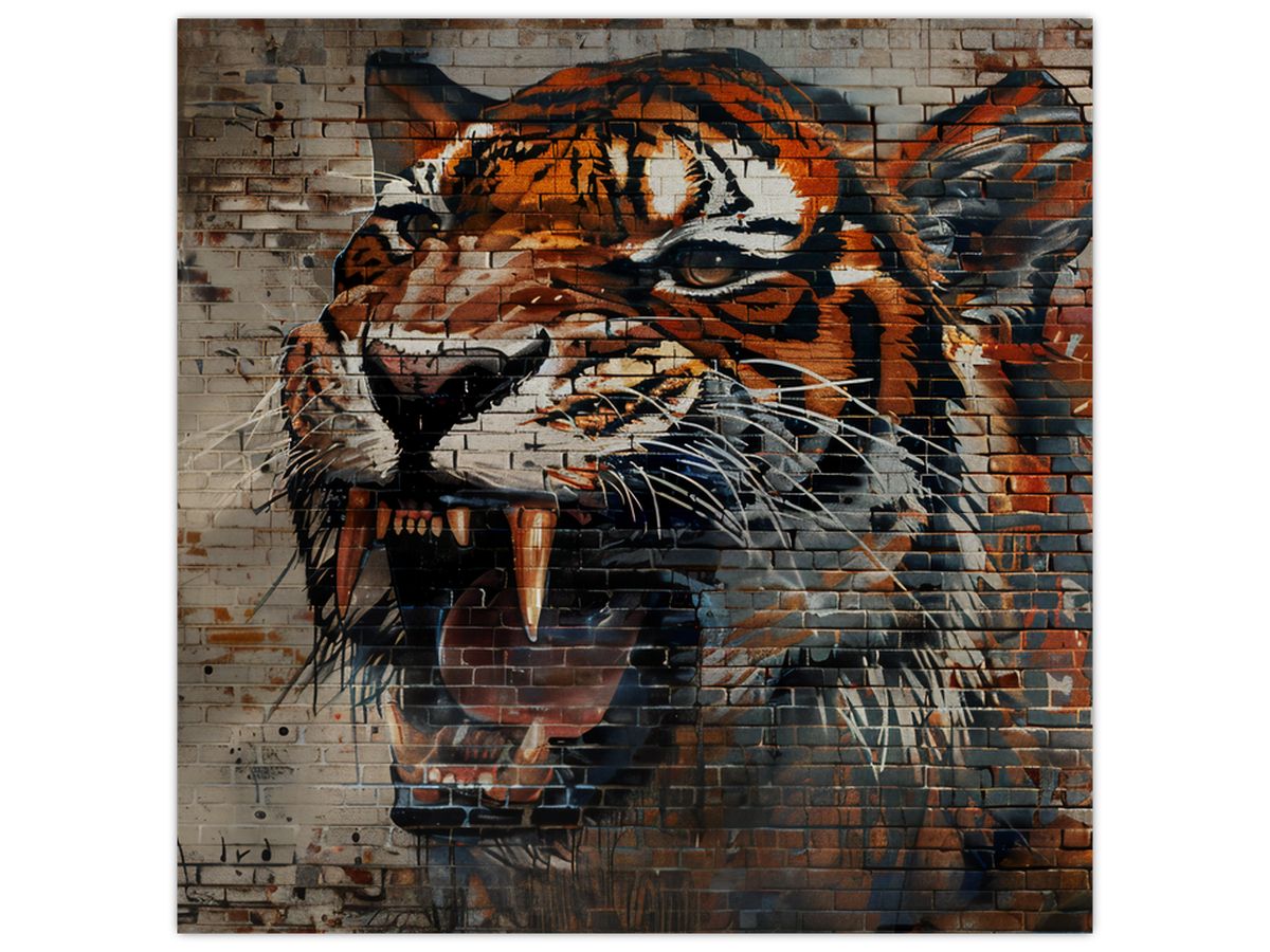 Skleněný obraz - Tygr z cihel